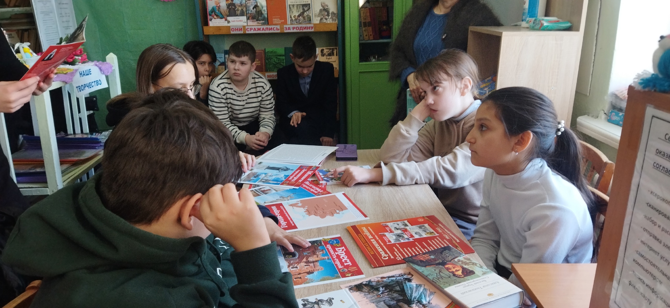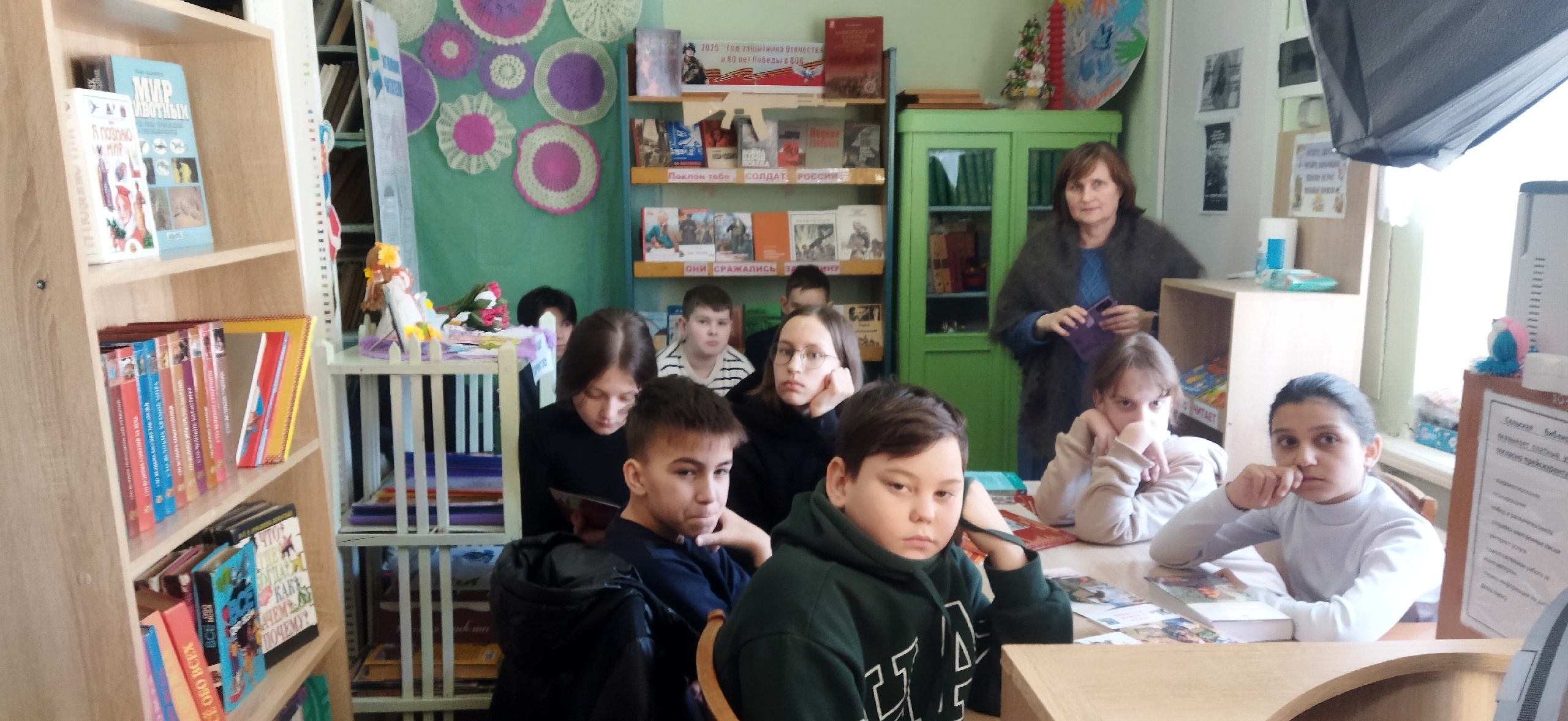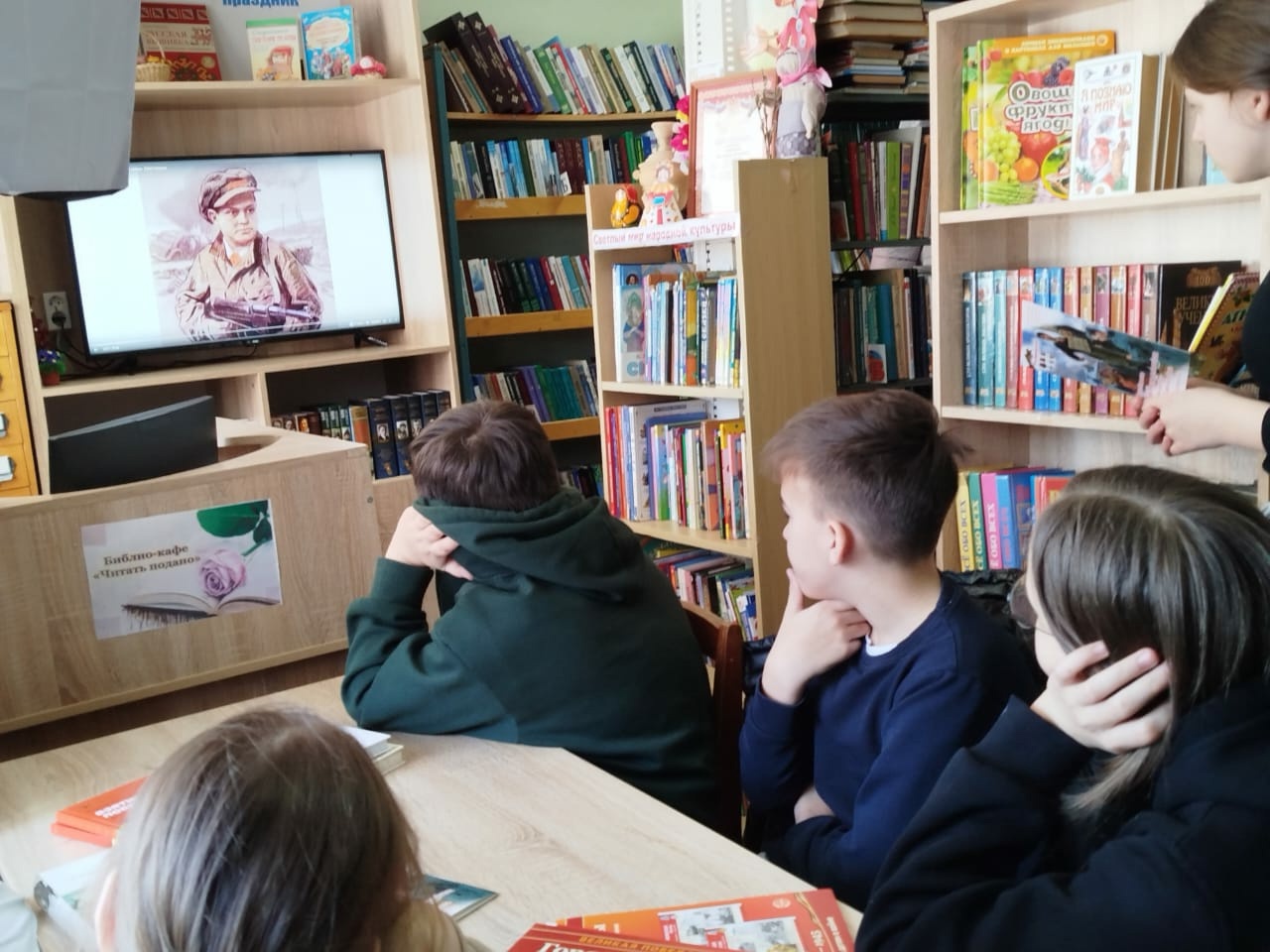 В стенах библиотеки прошел патриотический час с нашими юными читателями, где мы вспомнили юных героев ВОВ, книги, описывающих их подвиг, посмотрели фильм о Лене Голикове