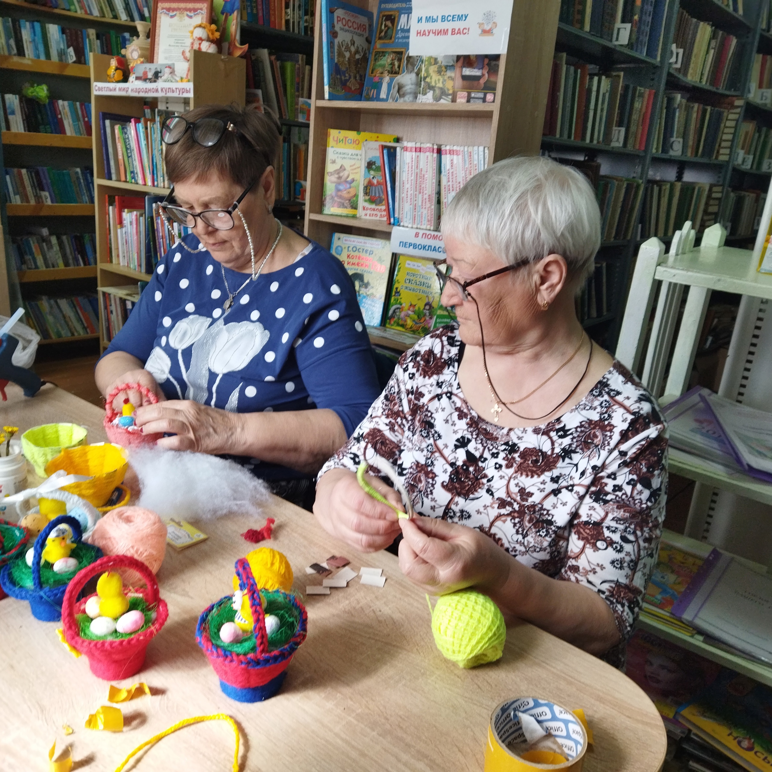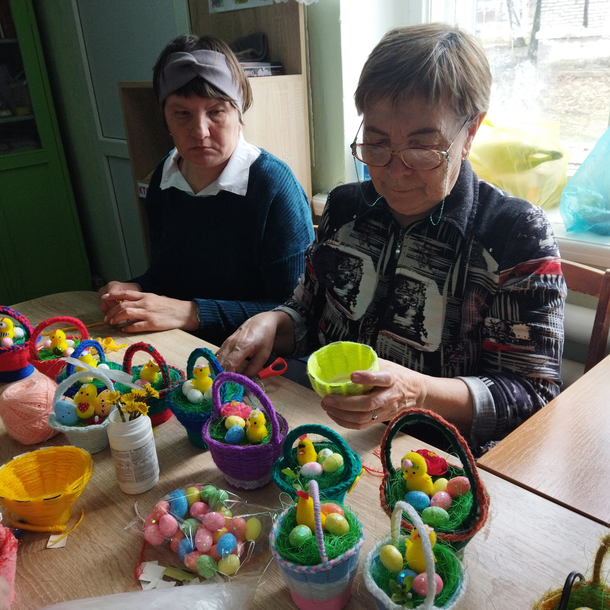 Корзинки, сделанные из бумажных стаканчиков, плюс остатки цветных нитей , которые всегда найдутся у хозяйки-рукодельницы, немного украшения и пасхальный сувенир готов ! Они станут украшением не только для своих односельчан, родных и близких, часть корзинок будут переданы на благотворительную ярмарку в храм Казанских святых г.Бирска.