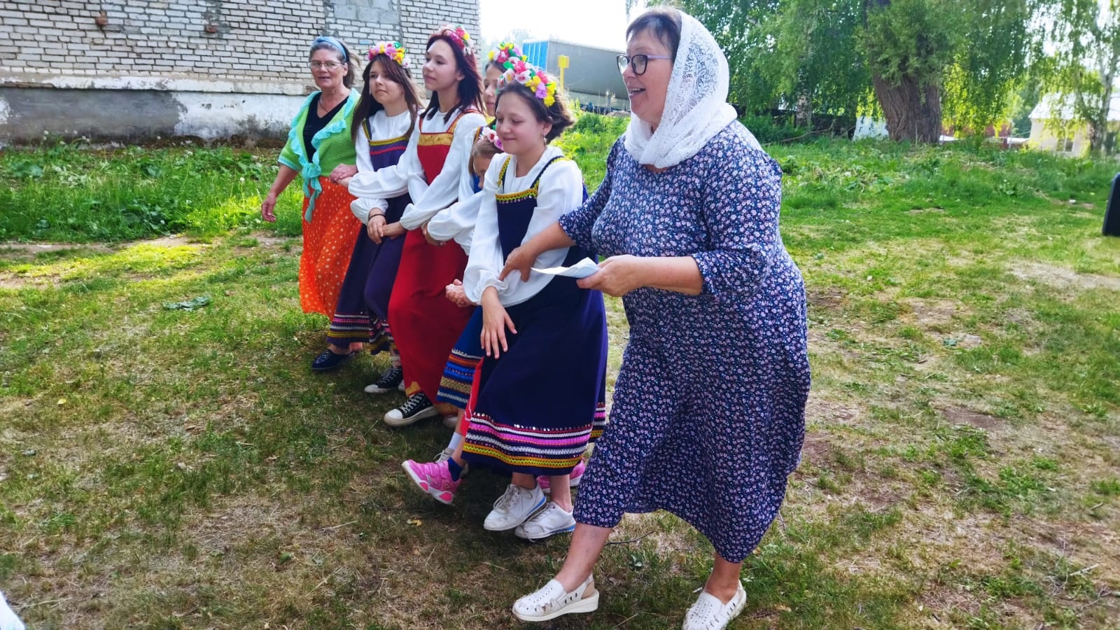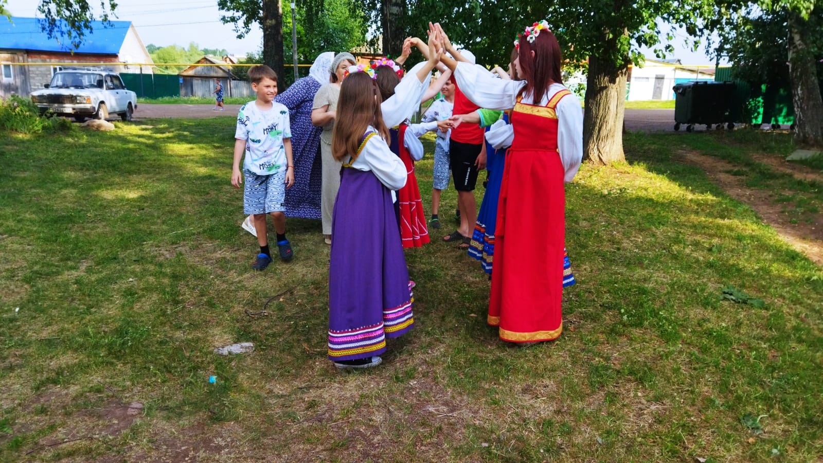 Театрализованный обряд с хороводами у березки, народные песни, танцы наполнили театральную постановку праздничным настроением. Участники театра вместе с педагогами Воскресной школы города Бирск Конаковой С.В., Шерстобитовой Л.А. водили хороводы, пели песни о берёзе – символе праздника, плели венки, загадывали загадки и играли в традиционные троицкие игры «Горелки», "Плетень", "Ручеек", вспоминая забавы наших предков.