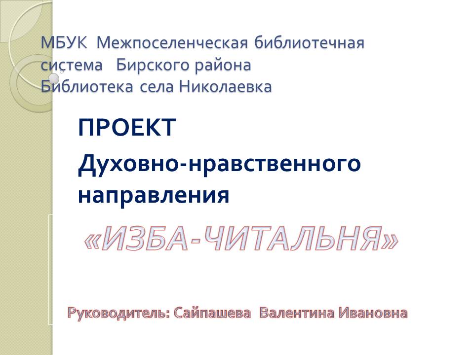 Проект "Изба-читальня"